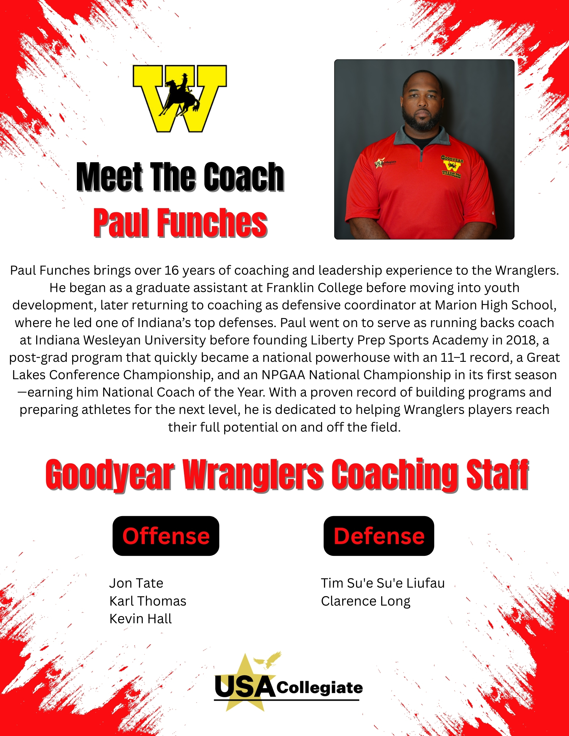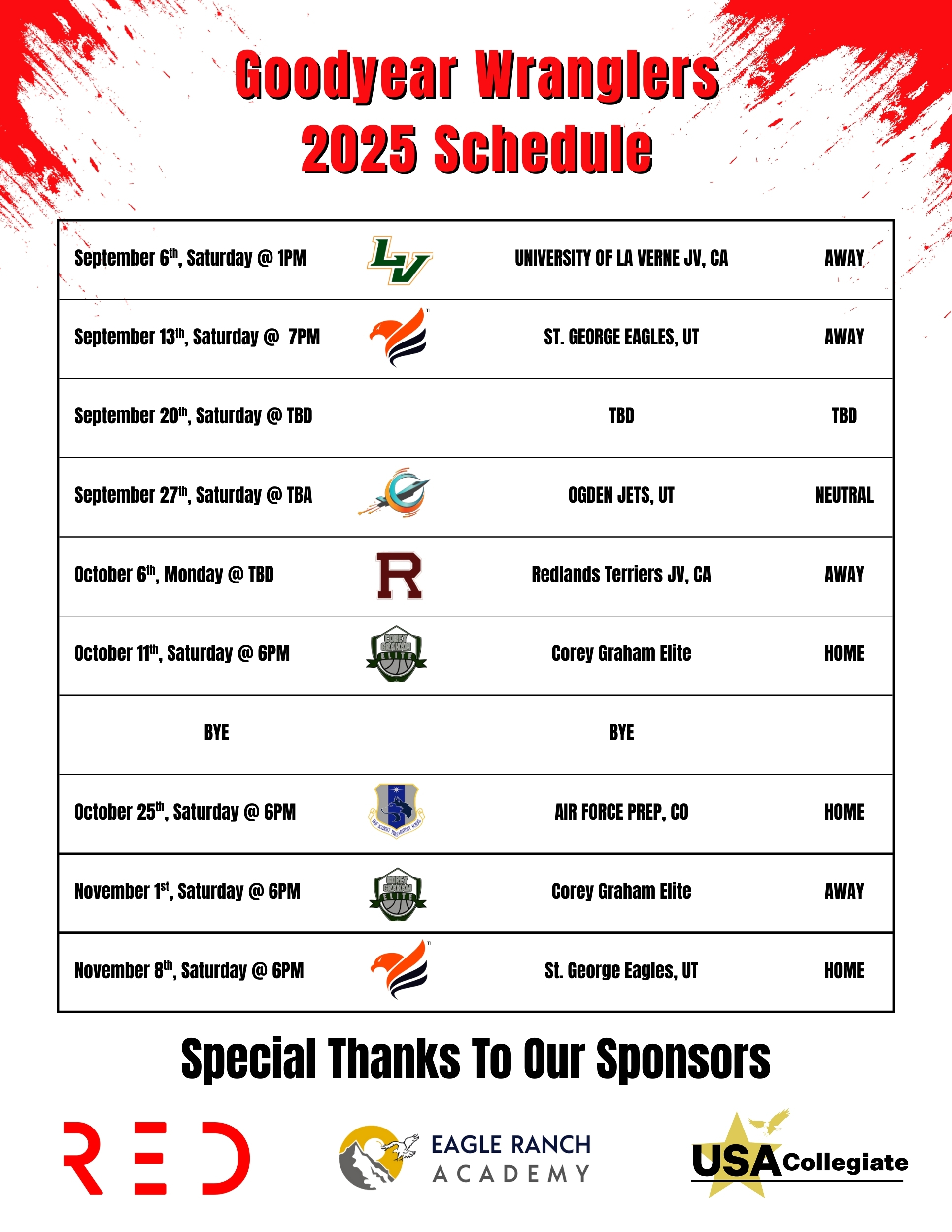 Goodyear Wranglers is one of the first private Post High School Collegiate/JUCO Football teams in Arizona whose program will help post-high school football players develop academically, athletically and physically to reach their goal of playing major college football.